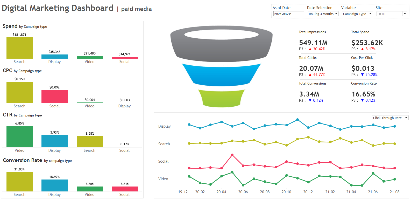 디지털 마케팅 대시보드를 연습해보았습니다.